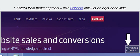 The first image on the next page shows a landing page for visitors from India. The bottom part of the page has various ads for other businesses. The second image shows a similar page for visitors from India but it does not have a button to try it for free. In addition, it has a Careers Chicklet in the bottom right corner saying the company is hiring in the Dallas area.